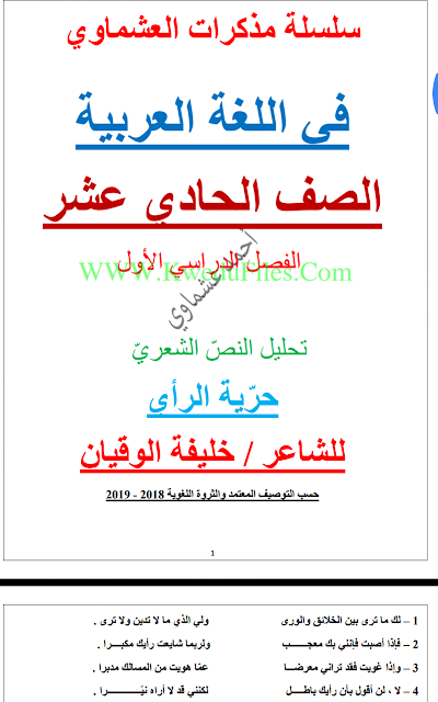 أحدث ملفات الصف الحادي عشر, لغة عربية, الفصل الأول