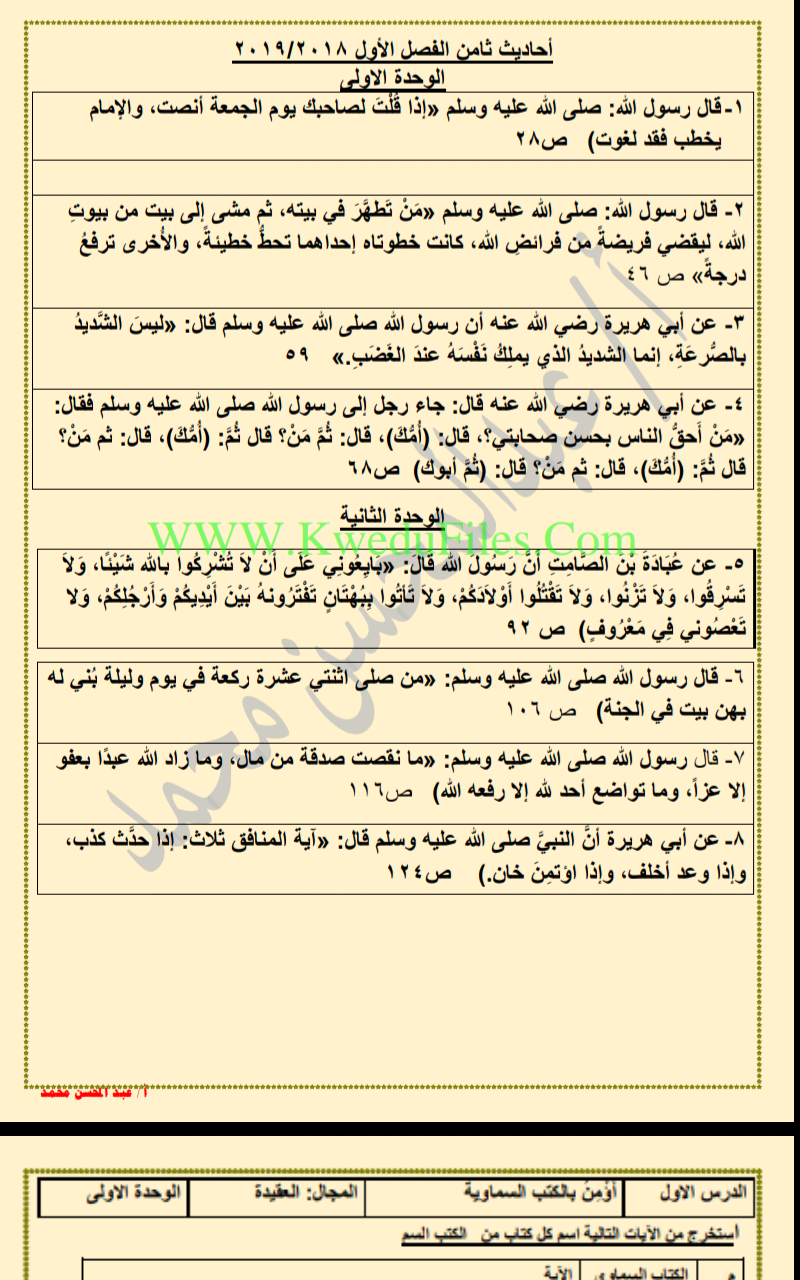 مذكرة تربية اسلامية ممتازة - إعداد: عبد المحسن محمد