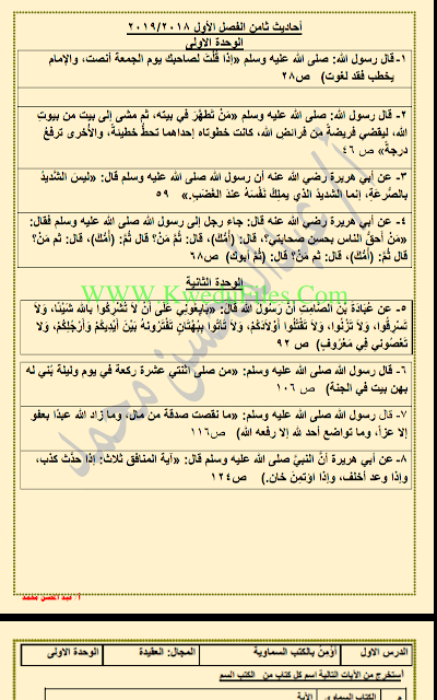 أحدث ملفات الصف الثامن, تربية اسلامية, الفصل الأول