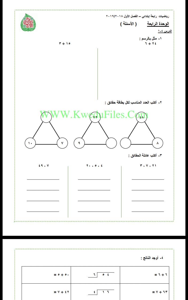 تم إيجاد الملف: اسئلة الوحدة الرابعة في مادة الرياضيات