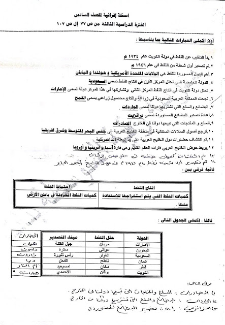 يحتوي الملف على بنك اسئلة في مادة الاجتماعيات للصف السادس للفصل الدراسي الثاني عدد اوراق هذا الملف 9 اوراق ويتضمن اسئلة للفترة الثالثة