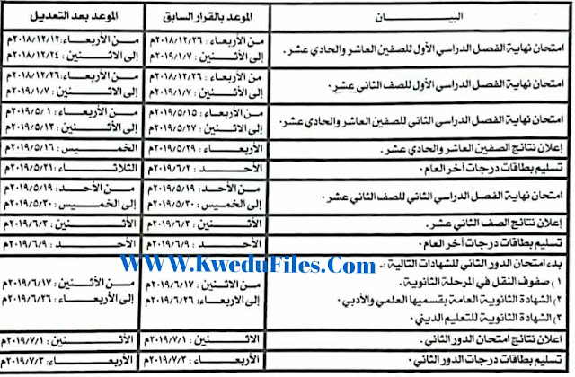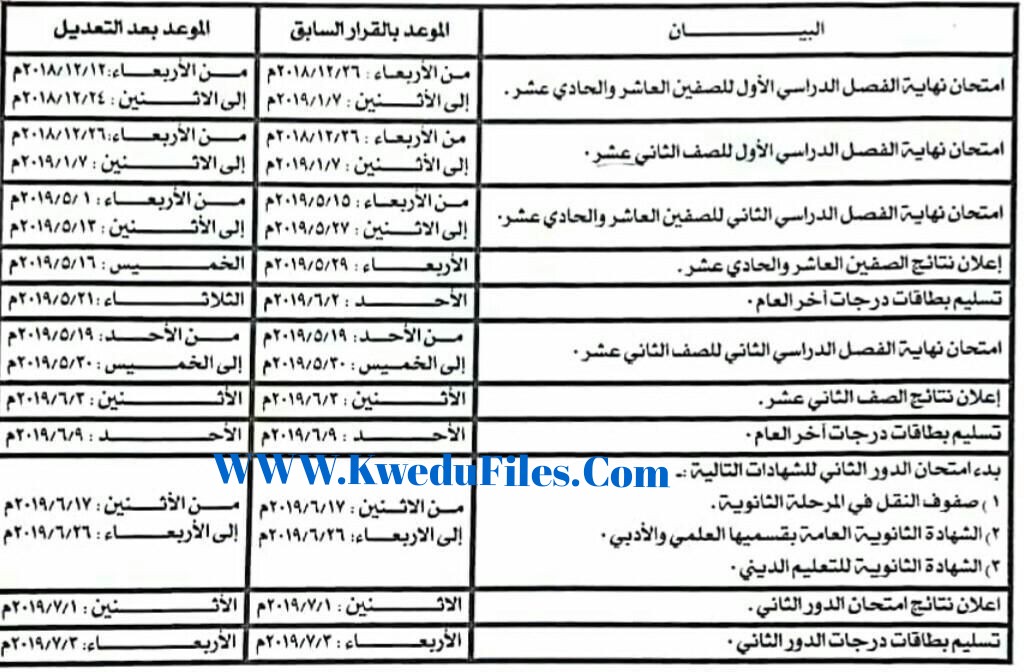 .تقديم مواعيد اختبارات عاشر وحادي عشر وثاني عشر نفس الموعد بدون تغيير