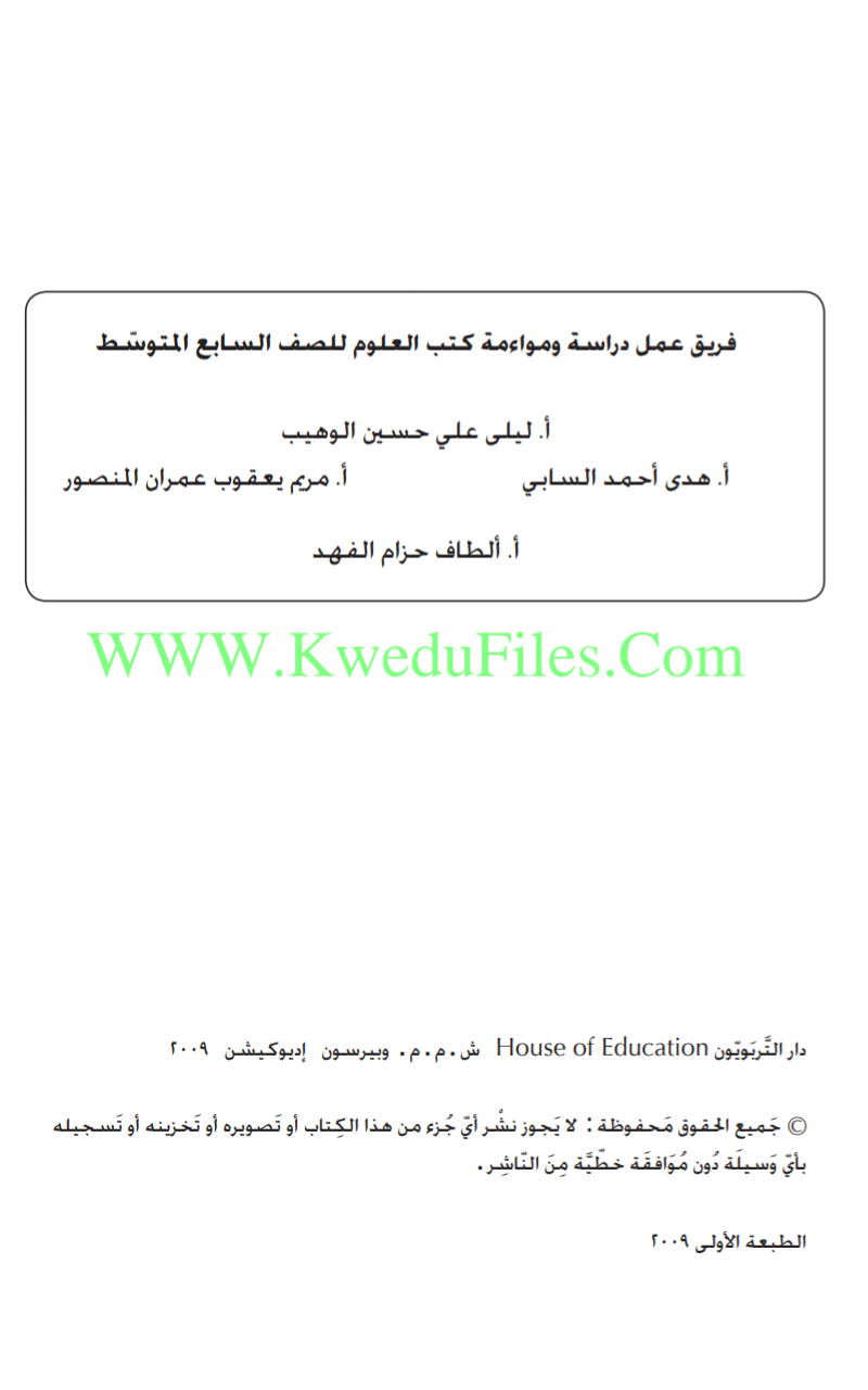 أنت هنا: موقع المناهجالمناهج الكويتية الصف السابع علوم الفصل الأول حلول