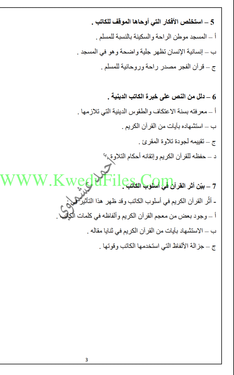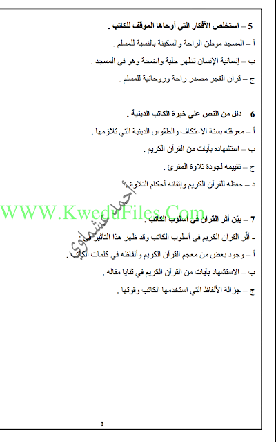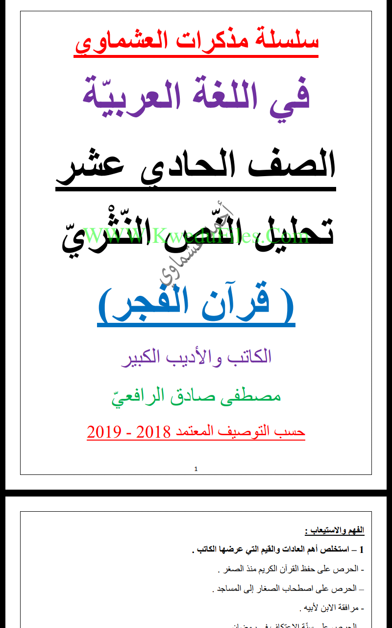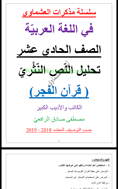 مذكرة درس قرآن الفجر في مادة اللغة العربية - إعداد: العشماوي | ||