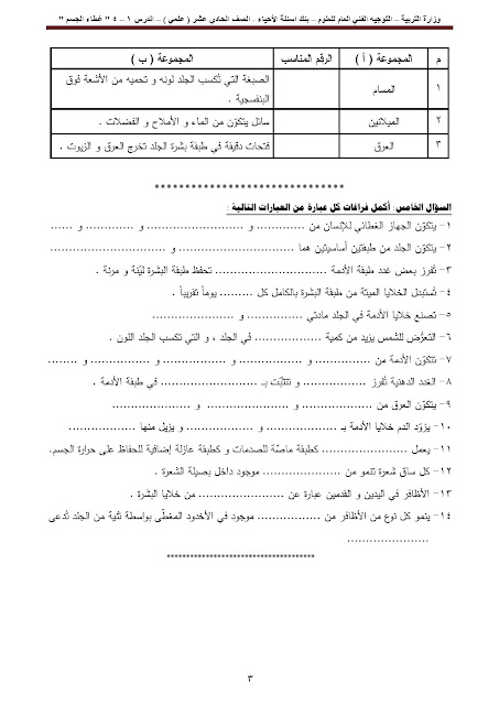 6. الصف السابع, لغة عربية, أوراق تقويمية شاملة العشماوي
