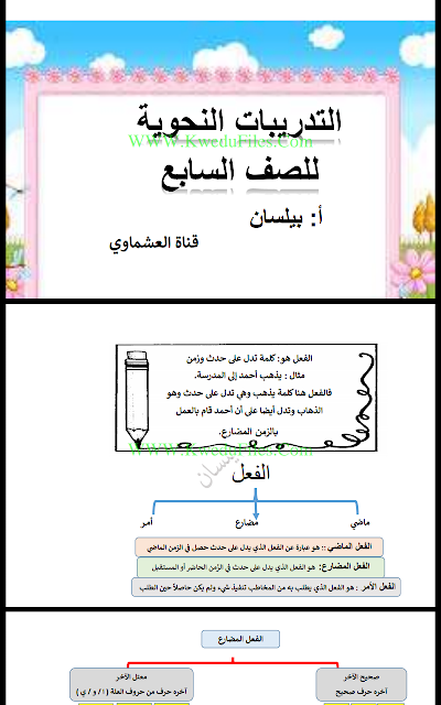 معلومات الملف: 9اوراق في مادة اللغة العربية للصف السابع للكوري الاول تتضمن تدريبات نحوية من اعداد الاستاذة بيلسان | ||