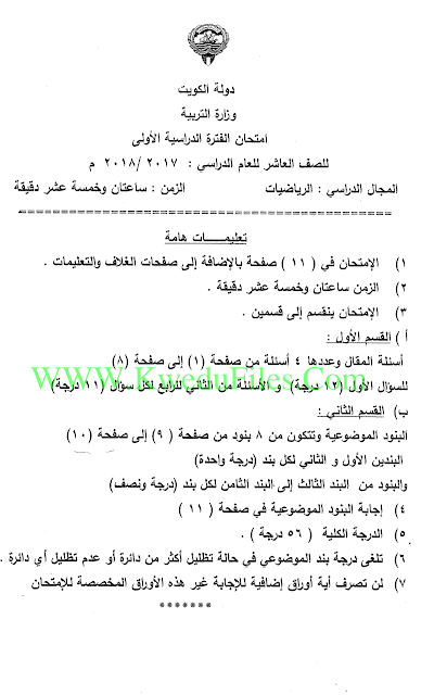 أحدث ملفات الصف العاشر, رياضيات, الفصل الأول
