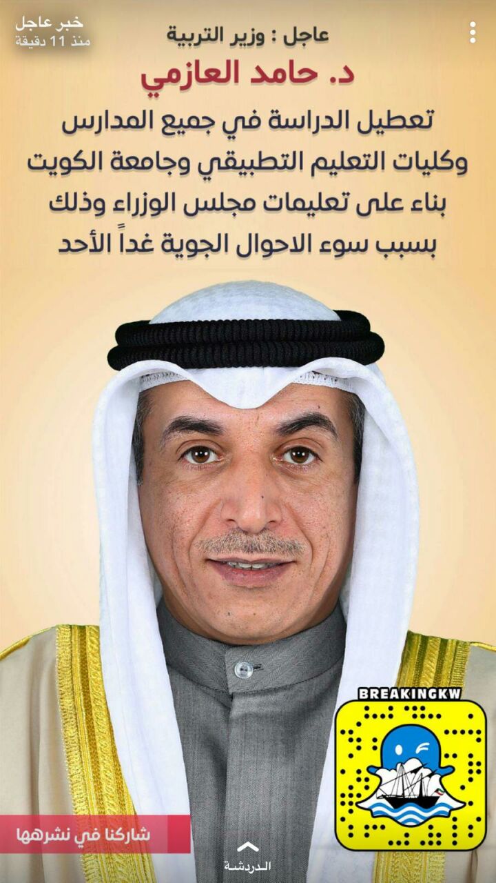 غداً اجازة للطلبة والهيئة التعليمية ،،، على ان يتواجد مديرو المدارس والمدراء المساعدين في مدارسهم