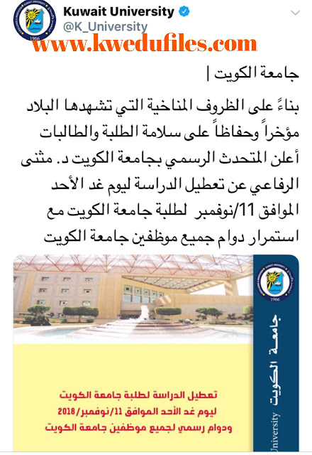 تم إيجاد الملف: تعطيل الدراسة في الجامعات والكليات الخاصة يوم غد الاحد نظراً للأحوال الجوية المتقلبة