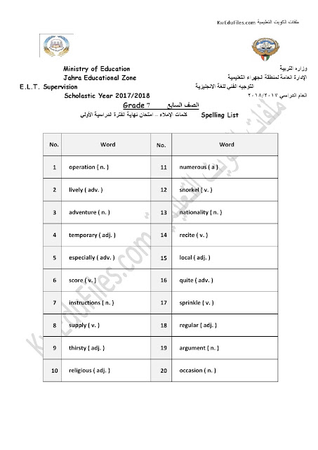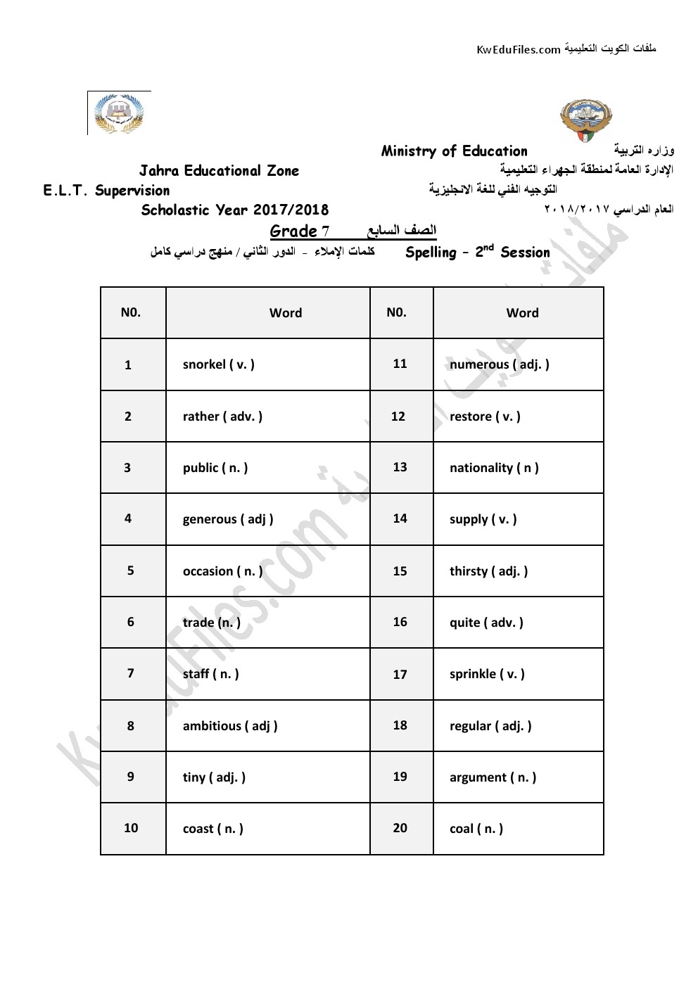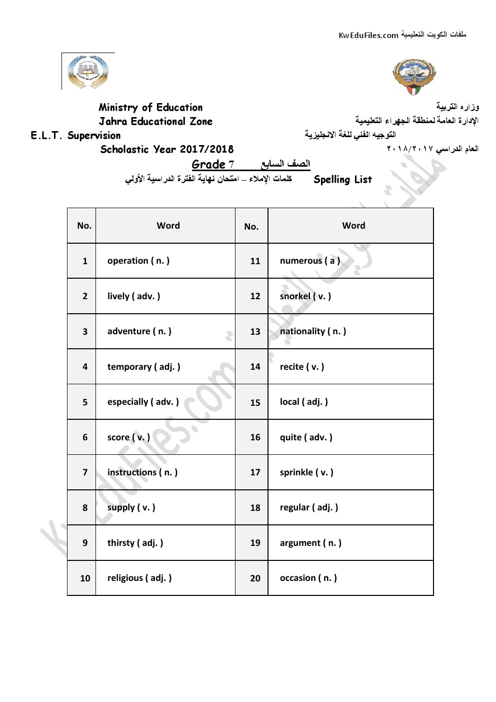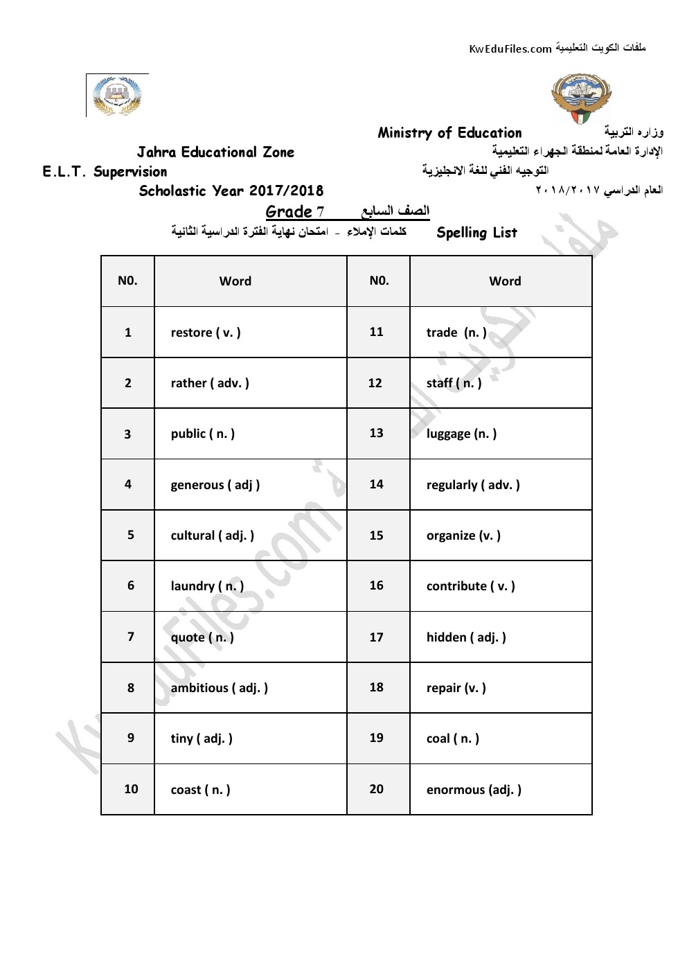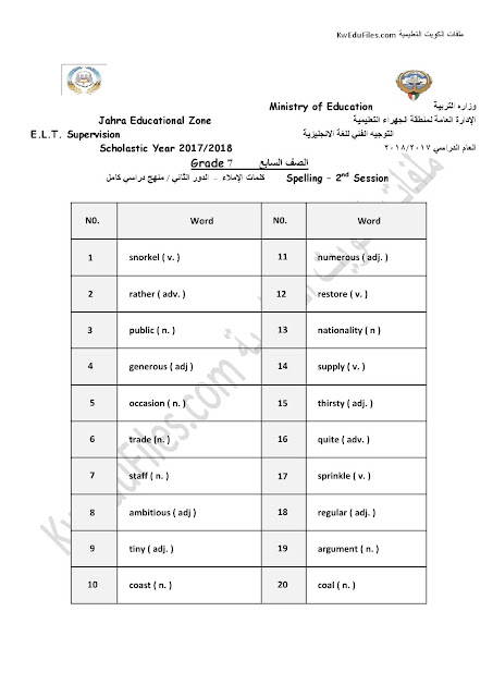 معلومات الملف: وزاره التربية Ministry of Education الإدارة العامة لمنطقة الجهراء التعليمية Jahra Educational Zone التوجيه الفني للغة الانجليزية E.L.T. Supervision العام الدراسي 2017/2018Scholastic Year 2017/2018 | ||