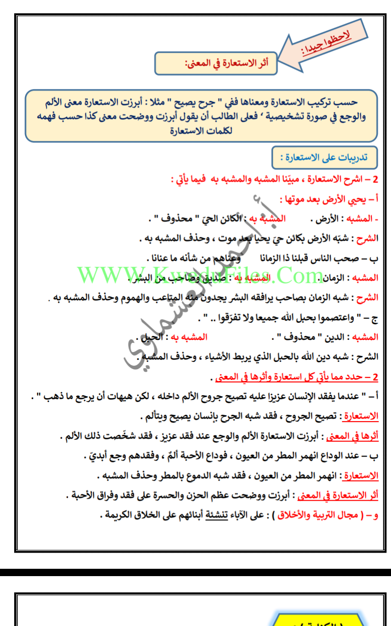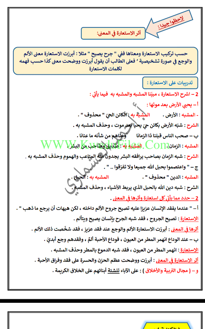 6. الصف التاسع, لغة عربية, أوراق تقويمية وتدريبية وتطبيقية ونماذج اختبارات قصيرة