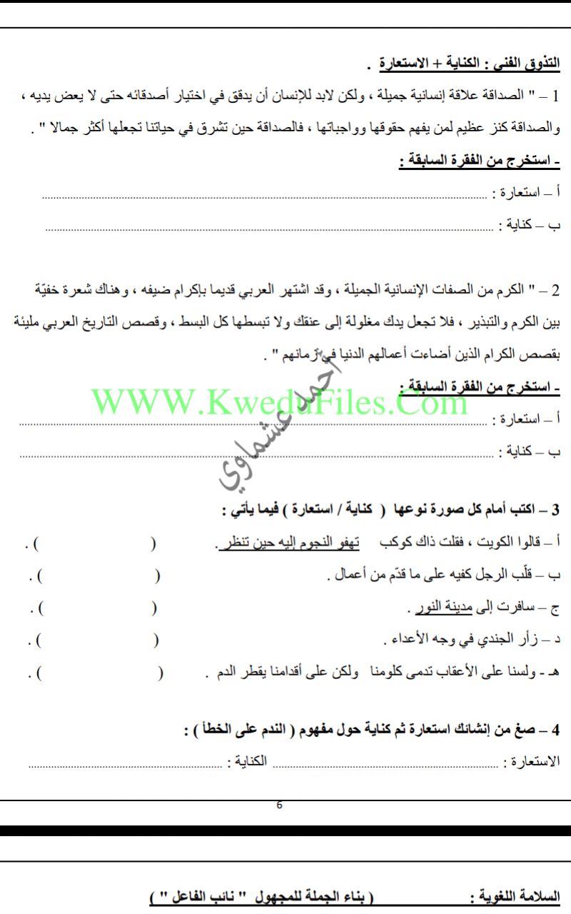 4. الصف السادس, لغة عربية, مذكرة السلامة اللغوية الشاملة للإعراب والجملة الاسمية