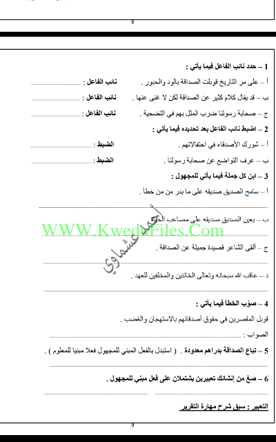 3. الصف السابع, لغة عربية, مذكرة السلامة اللغوية تشمل رفع ونصب وجزم الفعل المضارع