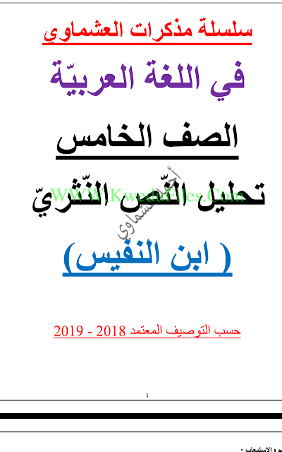 7اوراق في مادة اللغة العربية للصف الخامس للكورس الاول تتضمنمذكرةدرس ابن النفيس
