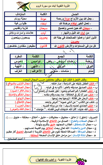 الثروة اللغوية كاملة في مادة اللغة العربية