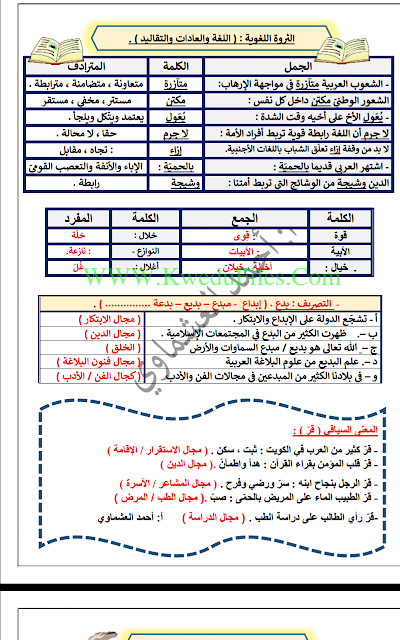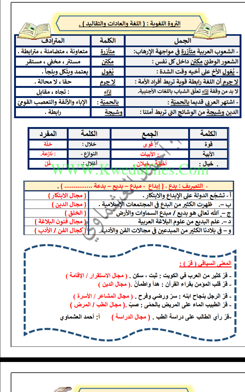 الثروة اللغوية كاملة في مادة اللغة العربية, الصف الثاني عشر, لغة عربية, الفصل الأول, 2018-2019 - المناهج الكويتية