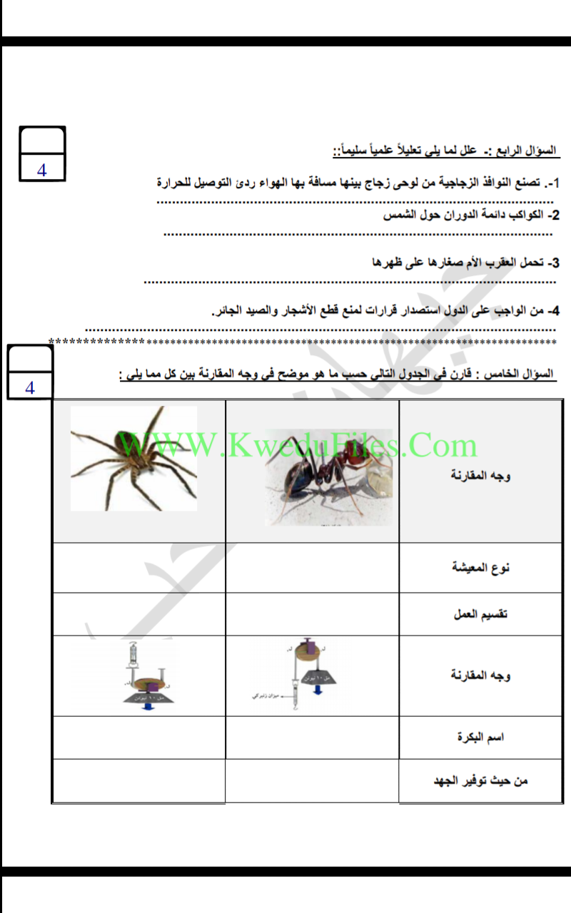 معلومات الملف: 5اوراق في مادة العلوم للصف السادس للكورس الاول تتضمن نموذج اختبار تجريبي | ||