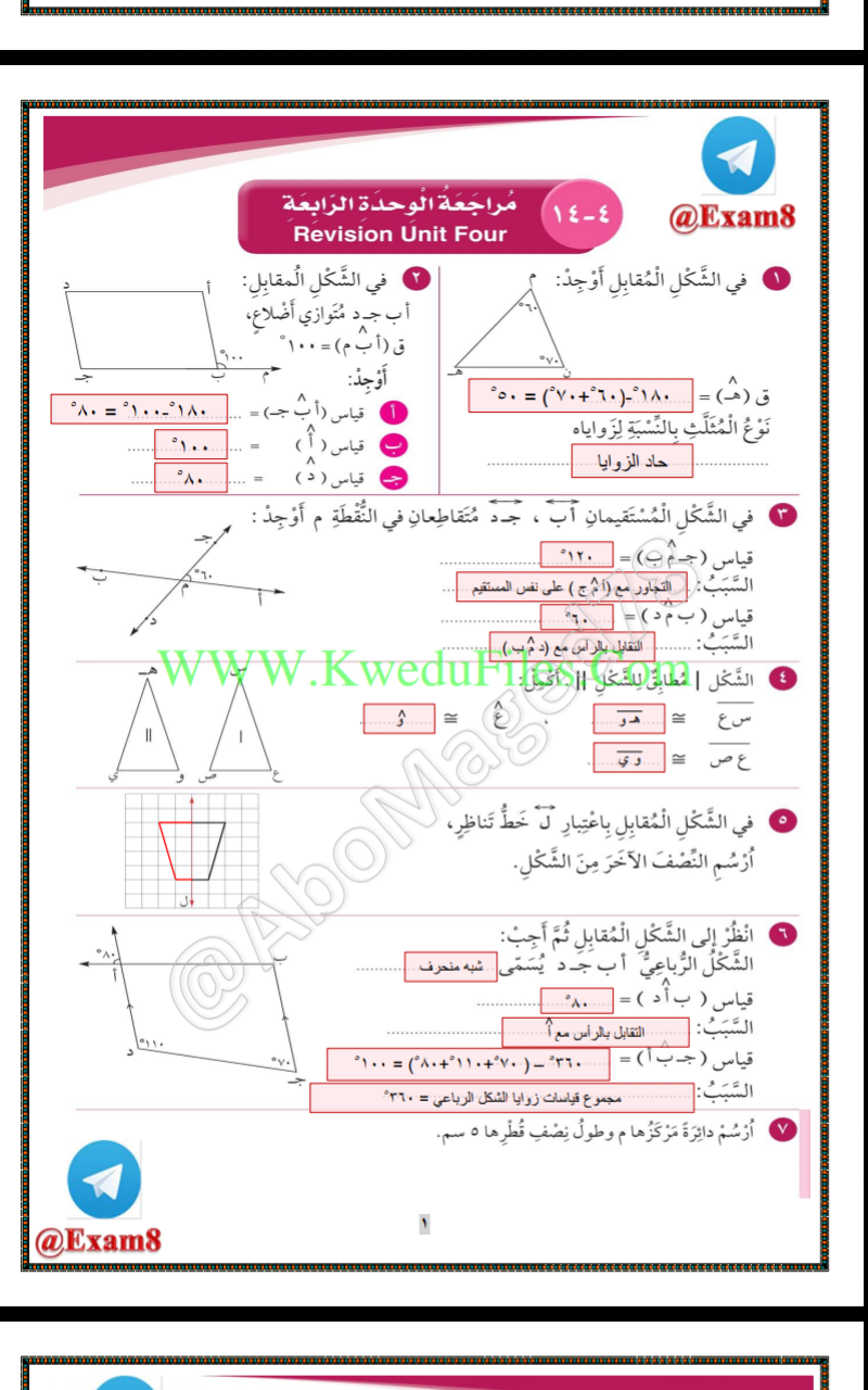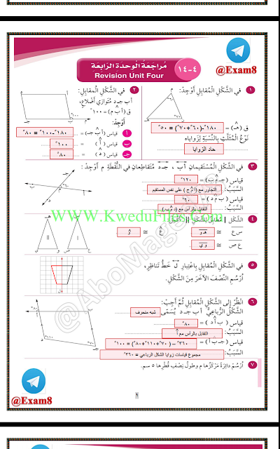 | 14. الصف الثامن, رياضيات, نماذج اختبارات تقويمية قبل 4 أيام | المشاهدات: 309