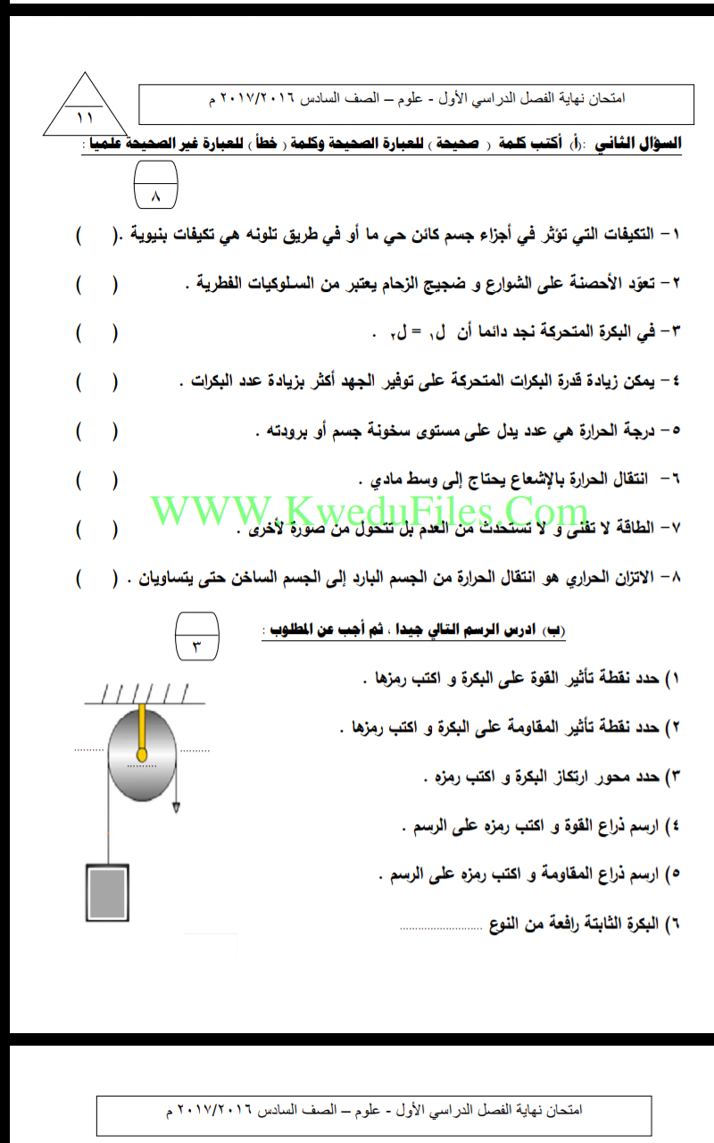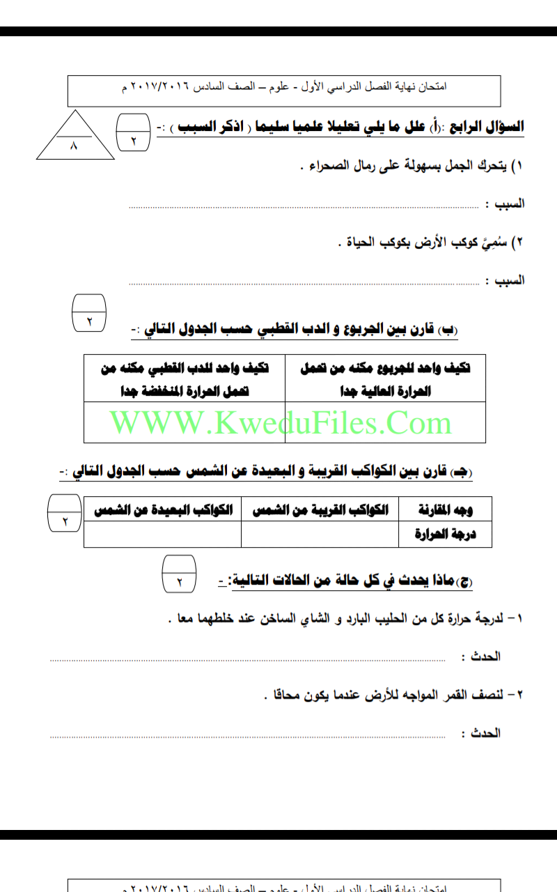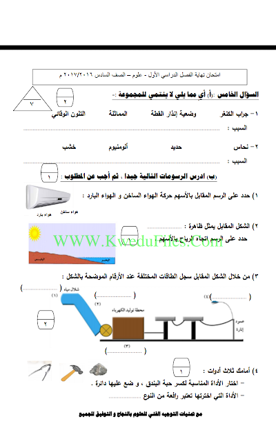 معلومات الملف: 5اوراق في مادة العلوم للصف السادس للكورس الاول تتضمن نموذج اختبار | ||
