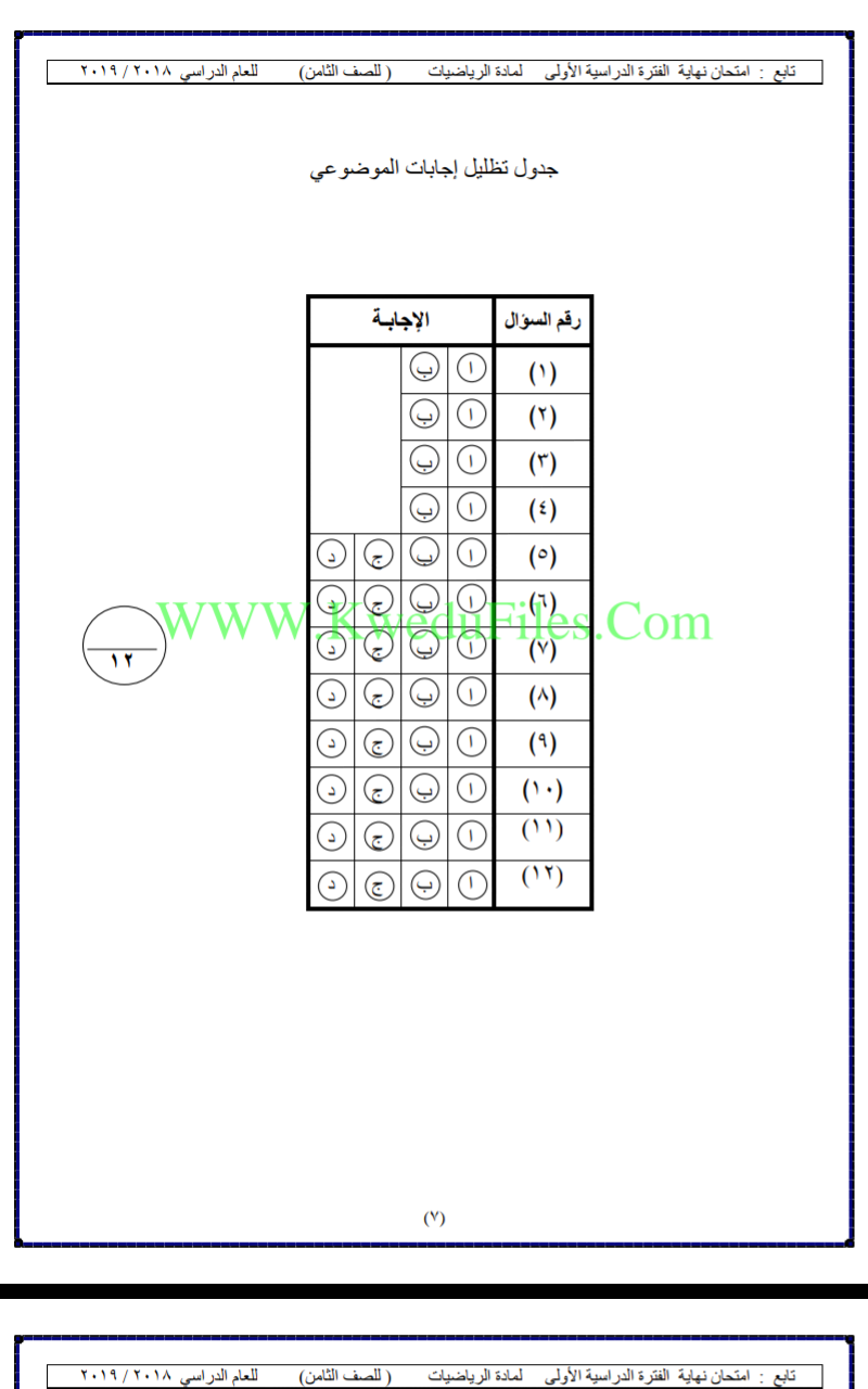 تم إيجاد الملف: نموذج اختبار لعام 2018_في مادة الرياضيات