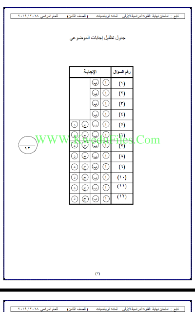| نموذج اختبار لعام 2018_في مادة الرياضيات - إعداد: منطقة مبارك الكبير التعليمية | ||