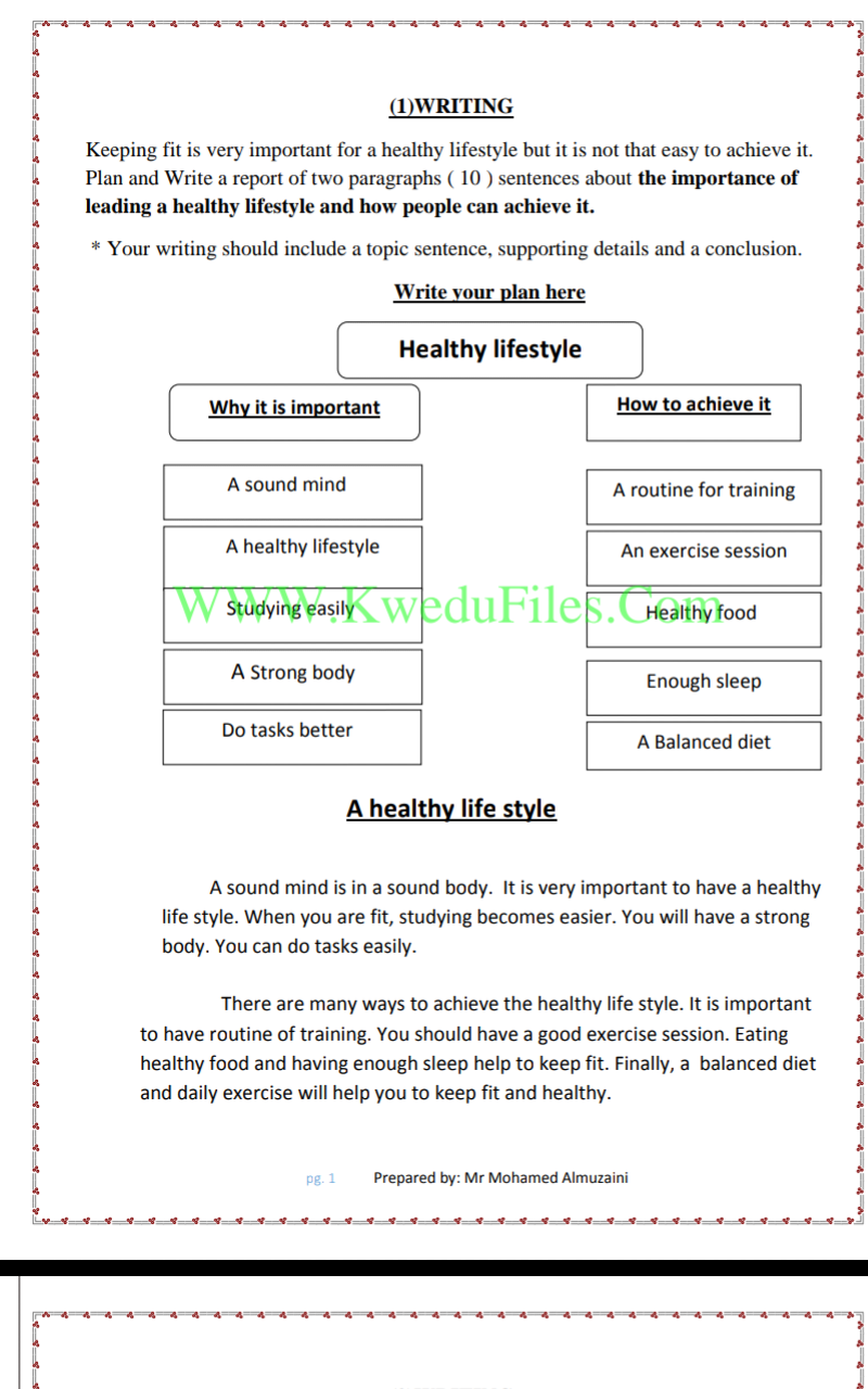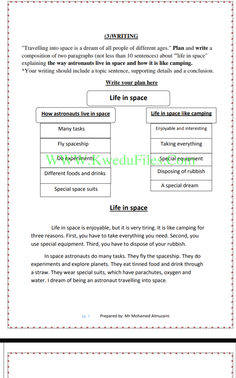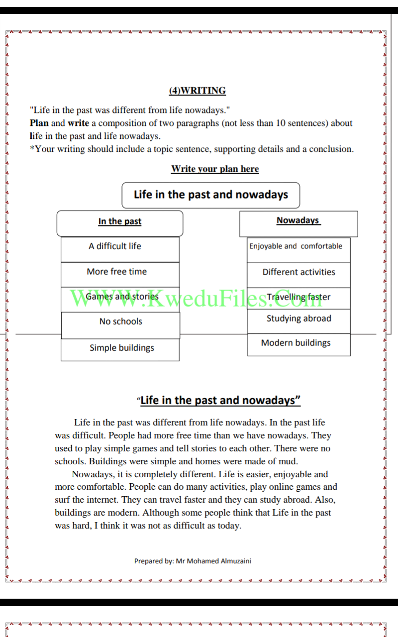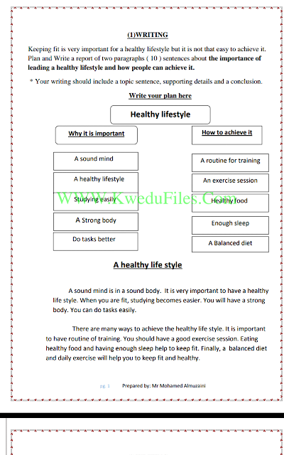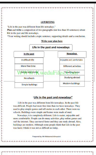 6اوراق في مادة اللغة الانكليزية للصف الثامن للكورس الاول تتضمن نموذج اختبار مهم