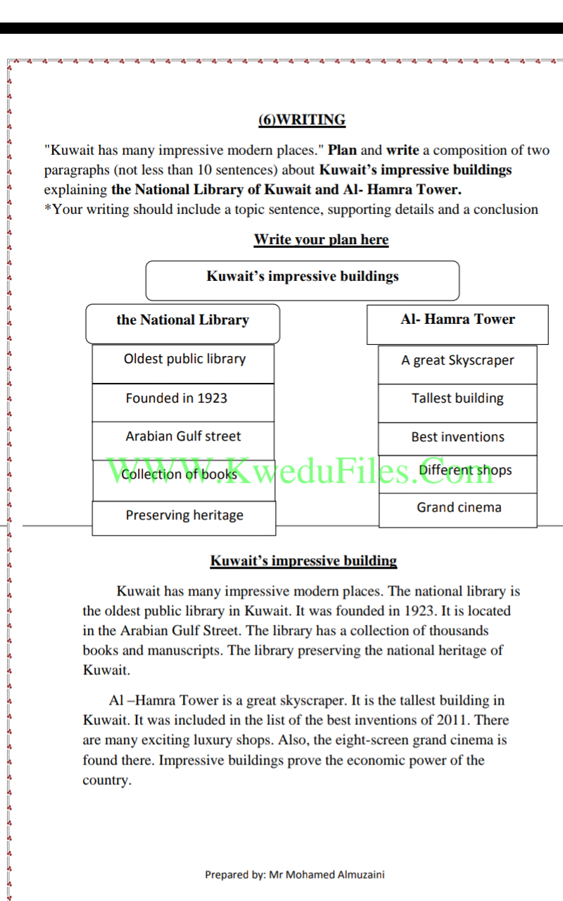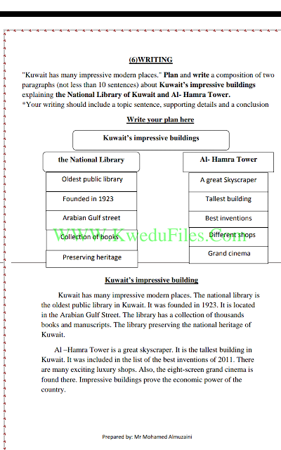 13. نموذج إجابة اختبار منطقة الجهراء التعليمية
