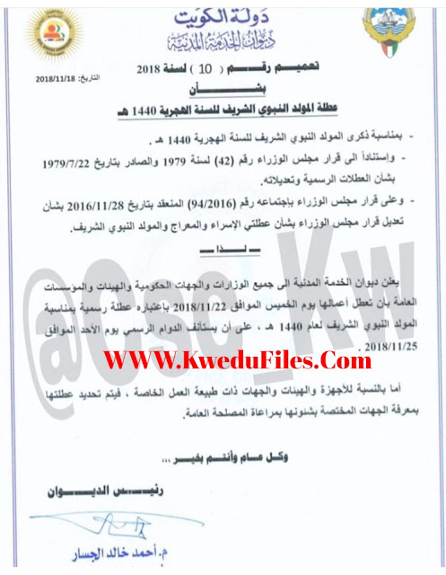 عطلة المولد النبوي الشريف للسنة الهجرية 1440ﮪ, أخبار, غير ذلك, الفصل الأول, 2018-2019