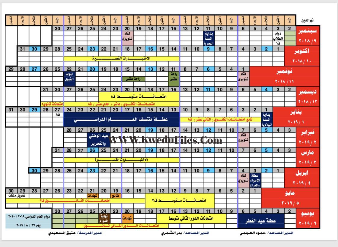رزنامة قرار رقم 1معدل, أخبار, غير ذلك, الفصل الأول, 2018-2019 | ||
