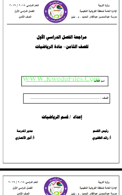 | مراجعة عامة في مادة الرياضيات - إعداد: منطقة الفروانية التعليمية | ||