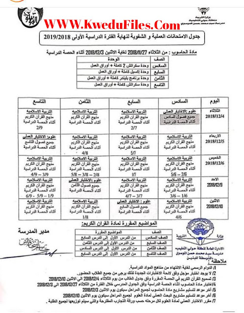 جدول الاختبارات العملية والشفوية لنهاية الفترة الاولى لعام للمرحلة المتوسطة, أخبار, الامتحانات, الفصل الأول, 2018-2019