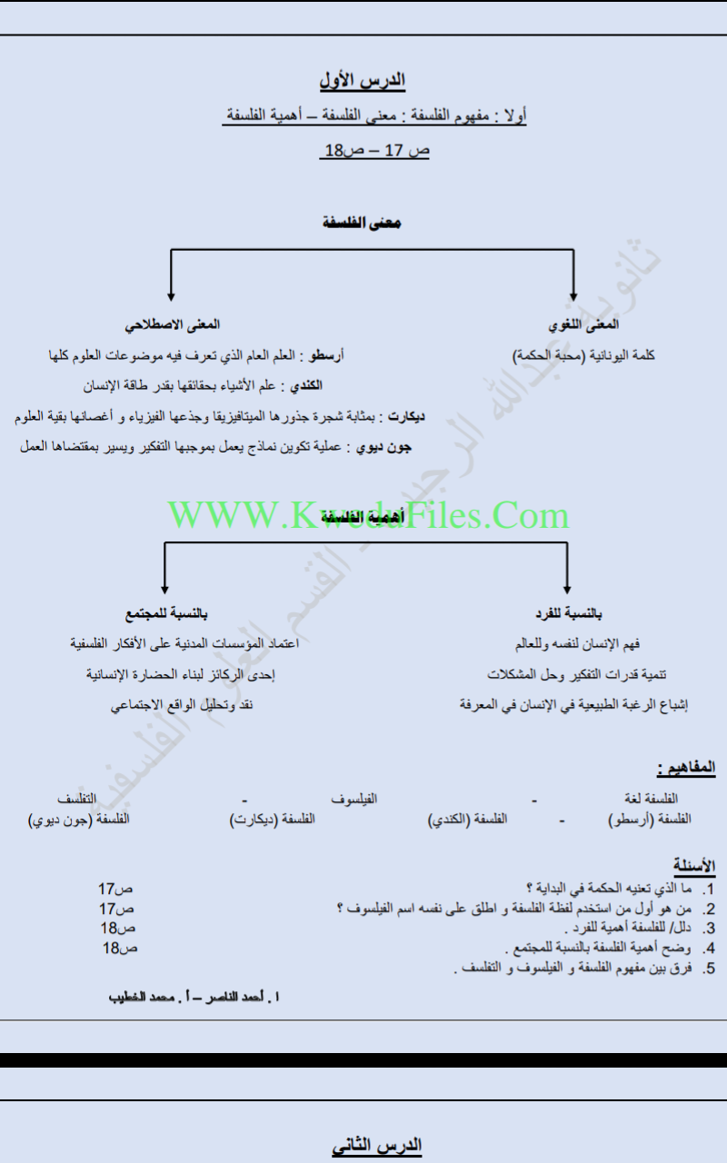 أحدث ملفات الصف الثاني عشر الأدبي, فلسفة, الفصل الأول