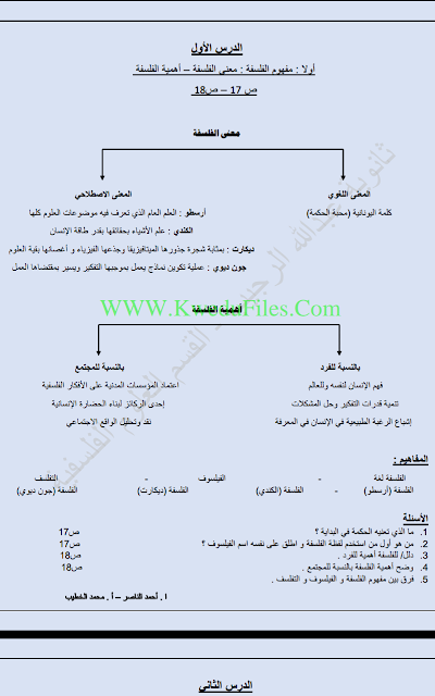 مذكرة ثانوية عبد الله الرجيب في مادة الفلسفة - إعداد: عبد الله الرجيب