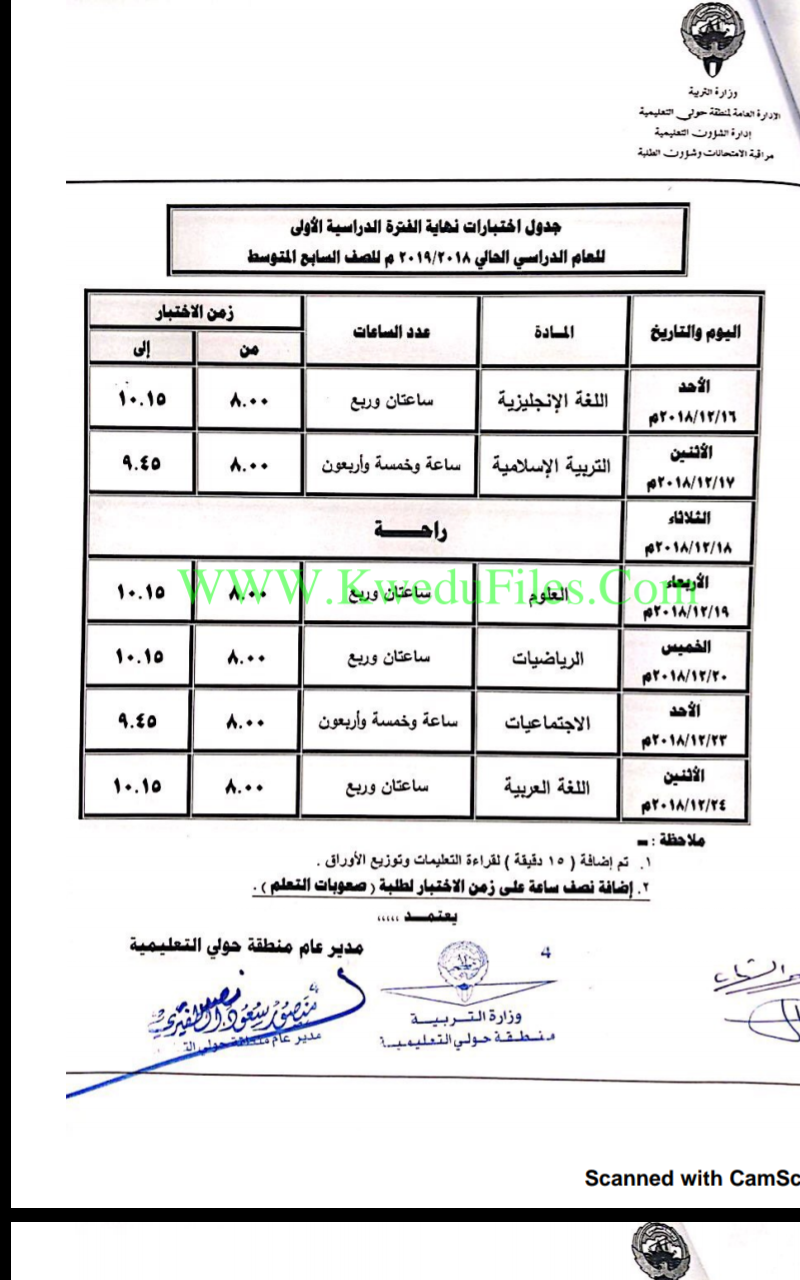 تم إيجاد الملف: جدول اختبارات المرحلة المتوسطة لمنطقة حولي التعليمية لعام 2018_