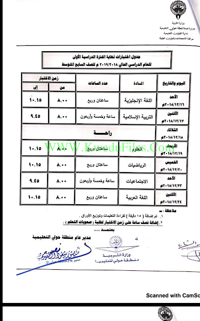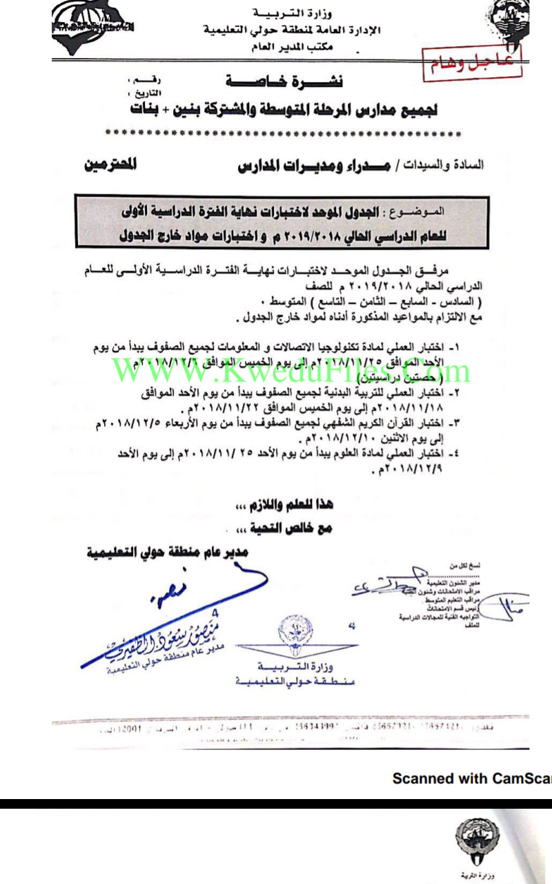 .جدول اختبارات المرحلة المتوسطة لمنطقة حولي التعليمية لعام 2018_2019 | ||||