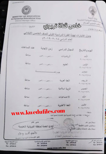 تم إيجاد الملف: جدول اختبارات المرحلة المتوسطة لمنطقة الفروانية التعليمية لعام 2018_
