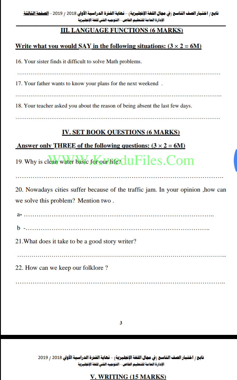 | أنت هنا: موقع المناهج ⇦ المناهج الكويتية ⇦ الصف التاسع ⇦ لغة انجليزية ⇦ الفصل الأول ⇦ الامتحان النهائي |