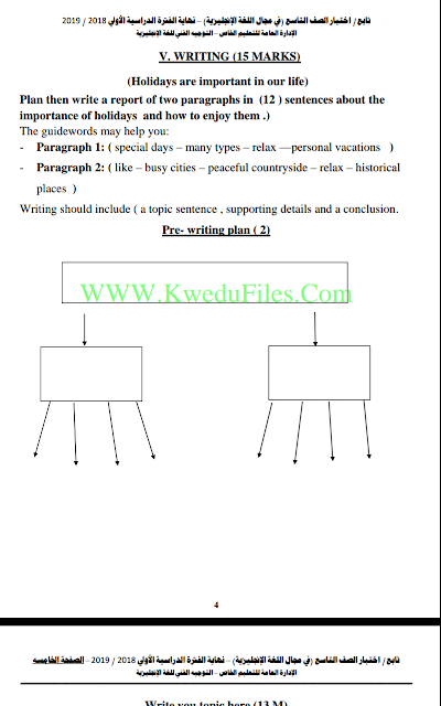 معلومات الملف: 7اوراق في مادة اللغة الانكليزية للصف التاسع للكورس الاول تتضمن نموذج اختبار تجريبي | ||