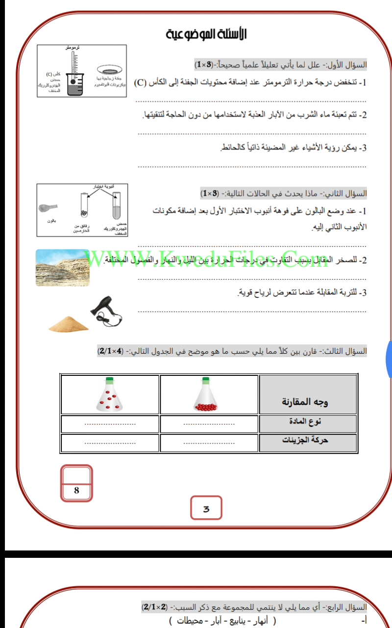 تم إيجاد الملف: نموذج اختبار في مادة العلوم مدرسة احمد الفارسي