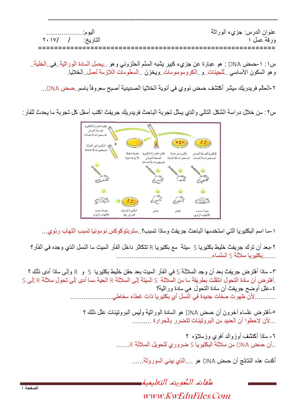 مذكرة محلولة في مادة الاحياء للصف الثاني عشر العلمي للفصل الدراسي الثاني عدد اوراق هذا الملف 25 ورقة ويتضمن جزئ الورثة وتركيب الحمض النووي وتضاعفه والبروتين والتركيب الظاهري والطفرات وكذلك الجينات والسرطان والتقنية الحيوية والهندسة الوراثية