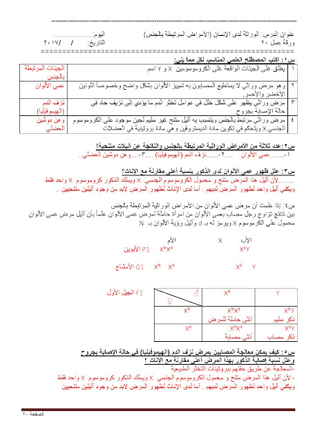 14. ملخص درس الطفرات والجينات والسرطان وكروموسومات الإنسان والوراثة والوراثة الجزيئية لدى الإنسان من سلسلة السهل الميسر