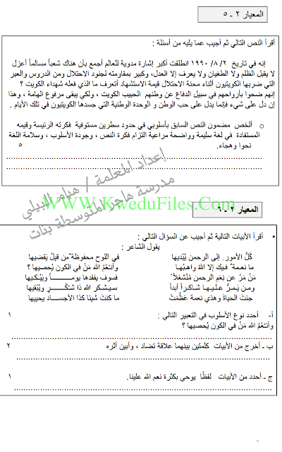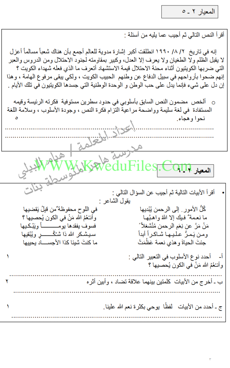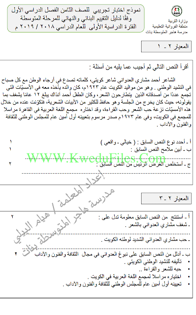أنت هنا: موقع المناهجالمناهج الكويتية الصف الثامن لغة عربية الفصل الأول الامتحان النهائي