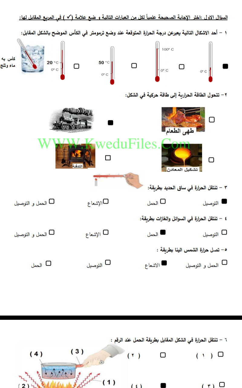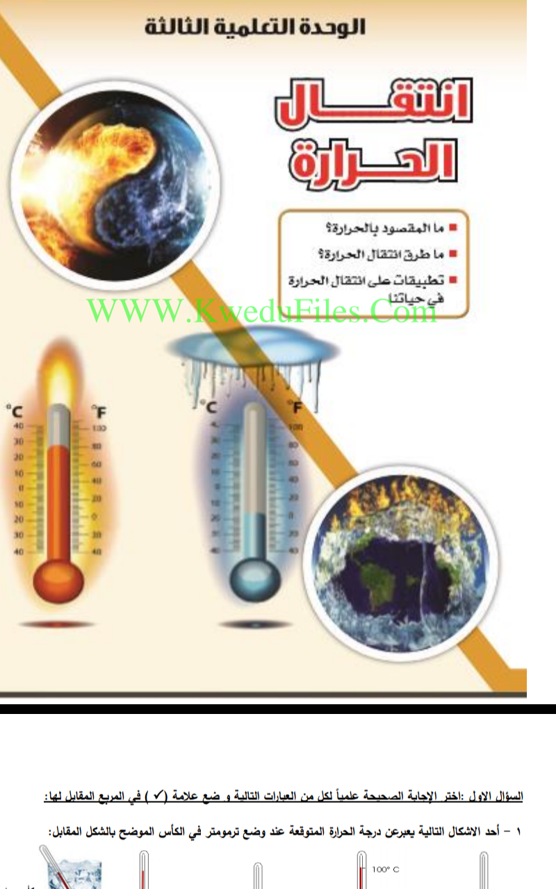| نموذج اجابة بنك اسئلة انتقال الحرارة في مادة العلوم | ||