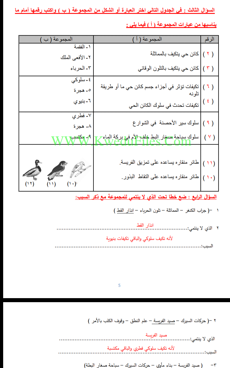 8اوراق في مادة العلوم للصف السادس للكورس الاول تتضمن نموذج اجابة بنك اسئلة السلوك