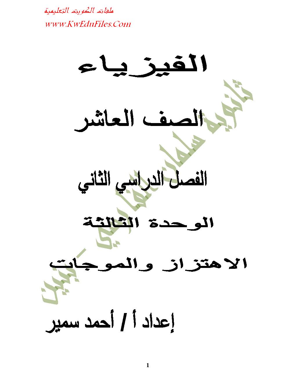 | مذكرة الموجات والاهتزازات - إعداد: ثانوية سلمان الفارسي | ||