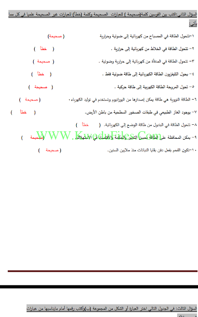 | نموذج اجابة بنك اسئلة تحولات الطاقة في مادة العلوم | ||