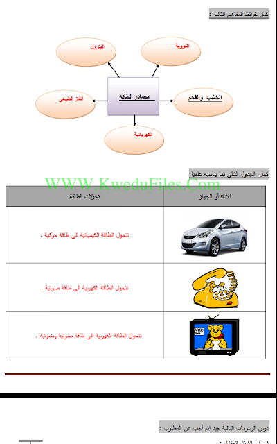 معلومات الملف: 9اوراق في مادة العلوم للصف السادس للكورس الاول تتضمن اجابة بنك اسئلة تحولات الطاقة | ||