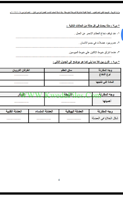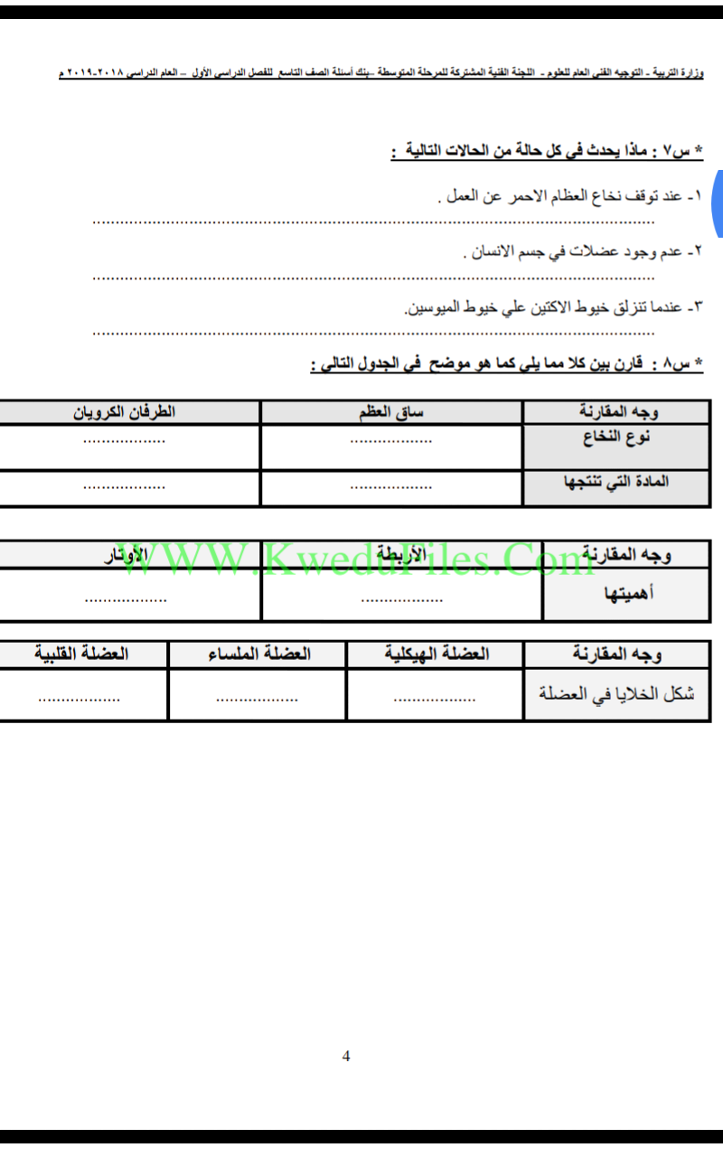 بنك اسئلة مهم في مادة العلوم, الصف التاسع, علوم, الفصل الأول, 2018-2019 - المناهج الكويتية