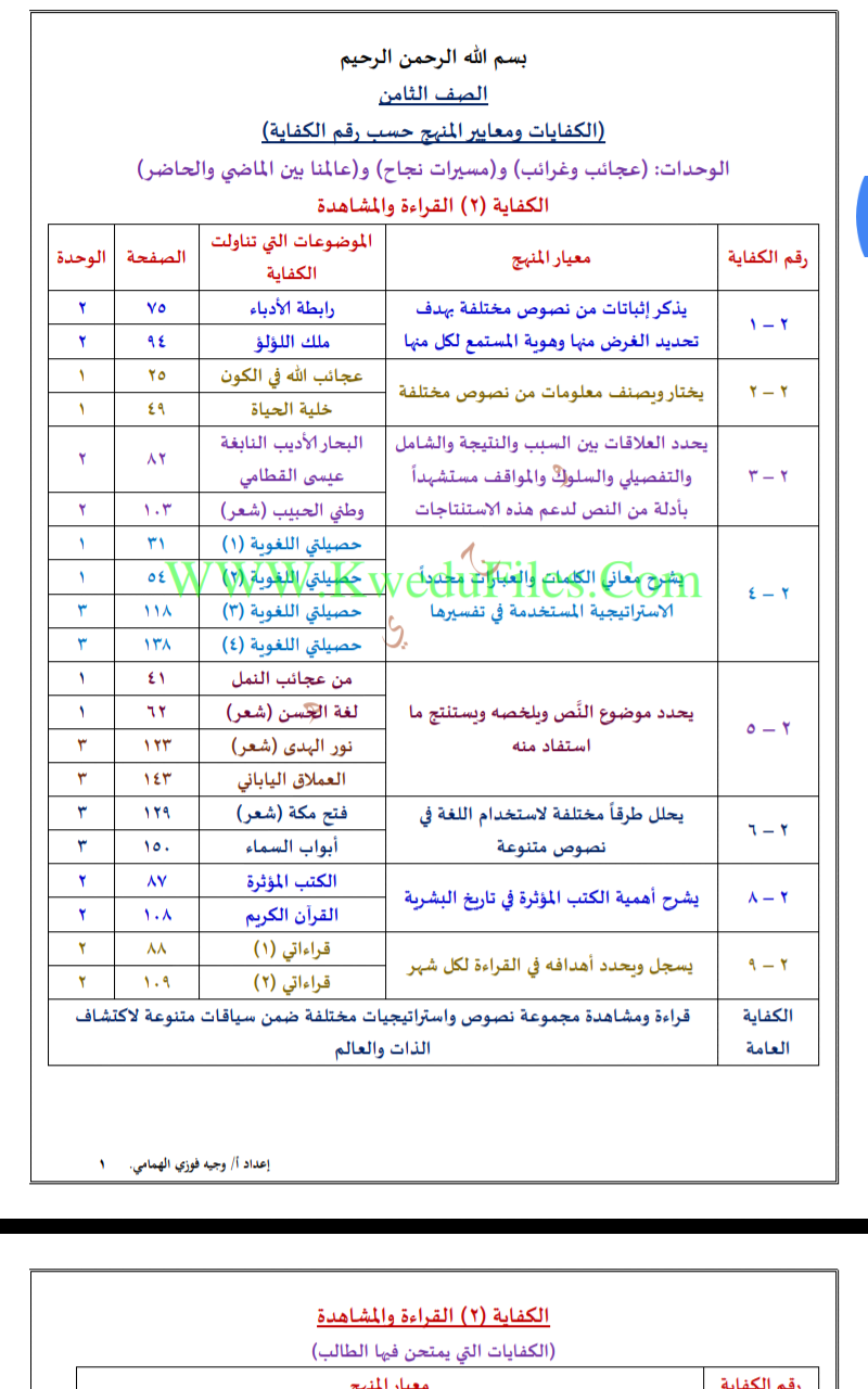 14. الصف الثامن, لغة عربية, ثروة لغوية شاملة من القرآن واللغة العربية للوحدتين الأولى والثانية