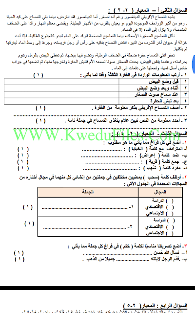 9. الصف السابع, لغة عربية, أوراق تقويمية شاملة العشماوي